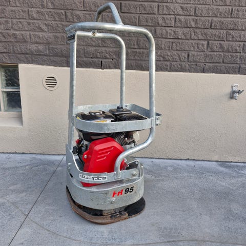 Säljer en Swepac FR 95 markvibrator (rundpadda) i bra skick. Maskinen är från 2022 och har använts sparsamt. Startar lätt och går fint, inga problem.