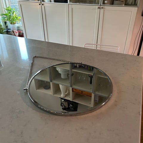House Doctor Rund Spegel med enkel design. Spegeln är rund och har en ram i svart färg. Passar för användning i olika rum som vardagsrum, sovrum eller hall. Spegeln är avsedd för väggmontering och har en minimalistisk stil. 49 cm i diametern.