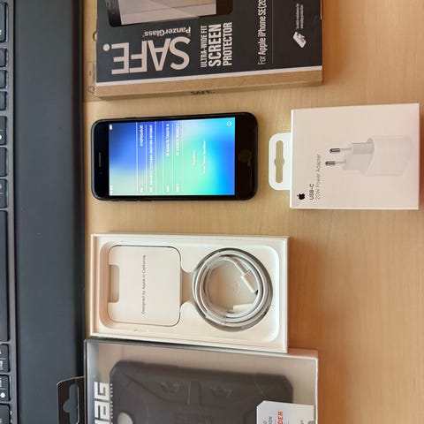Apple iPhone SE mobiltelefon med 128 GB lagringsutrymme. Enheten är i färgen roseguld och tillhör iPhone SE-serien (2-3 generation). Telefonen har en pekskärm och fysisk hemknapp. Den har 80% i kapacitet inga repor eller sprickor nästan ny.