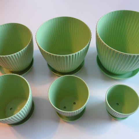 Olika krukor i olika storlekar och färger. Material varierar mellan keramik och plast. Passar för inomhus- och utomhusbruk.