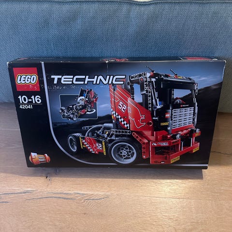 LEGO Technic 42050 Radiostyrd racerbil i blå färg. Setet innehåller delar för att bygga en radiostyrd bil med detaljerad design, lämplig för åldrar 10-16 år.