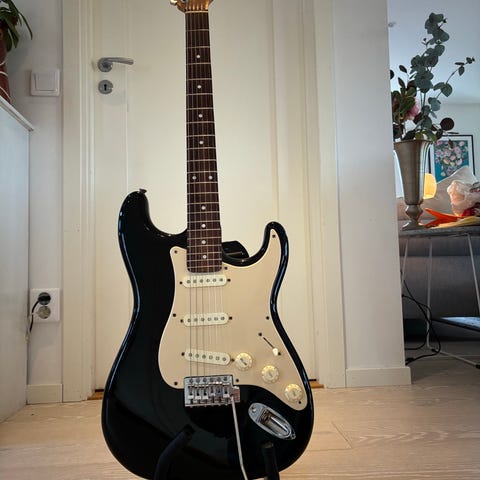 Squier strata. Fungerar väl. Perfekt för en nybörjare eller någon som vill doppa tårna i gitarrspelandet.