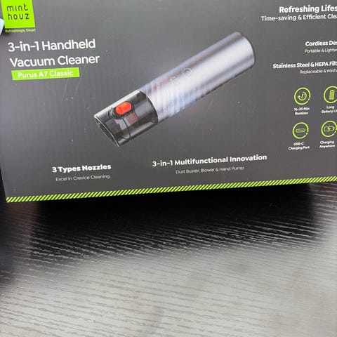 Vacuum sealing machine med en ingångsspänning på 5V och effekt på 5W. Produkten inkluderar tillbehör som några blå förslutningspåsar och en USB-kabel för laddning samt vacuum maskinen.