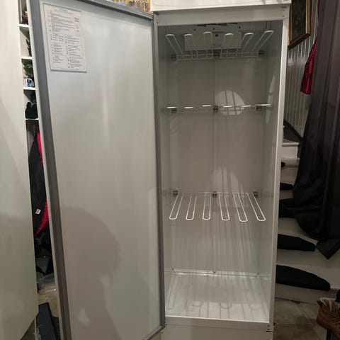 Electrolux torkskåp höjd 187, b 60 d 60 för torkning av kläder och textilier. Skåpet är utrustat med flera hyllor och krokar för effektiv upphängning och torkning. Passar för användning i hem eller arbetsmiljö där skonsam och jämn torkning önskas.