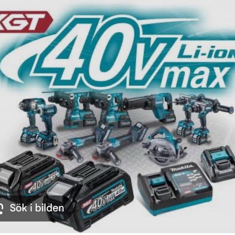 kombinationsverktygset innehåller flera verktyg med tillhörande 5.0 Ah batterier. Setet levereras i en förvaringsväska och är utformat för olika bygg- och hantverksuppgifter. (Ny pris 11 999kr)