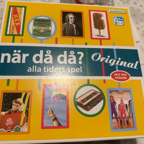 När Då Då? Original är ett brädspel som fokuserar på tidsrelaterade frågor och utmaningar. Spelet är utformat för flera spelare och passar för sociala tillfällen där deltagarna kan testa sina kunskaper om olika tidsperioder och historiska händelser. Söker detta spel. Gärna i Visby eller i närheten.