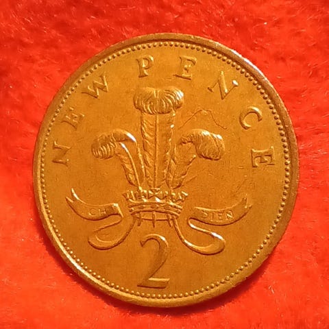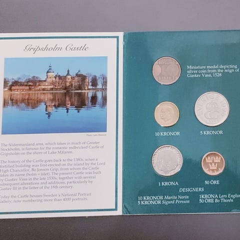 Setet innehåller mynt i valörerna 50 pence, 10 pence, 5 pence, 2 pence, 1 pence och en halvpenny.