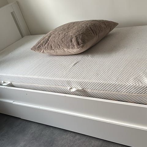 86 cm hög i huvudänden. Troligen ikea 80/90-talet?