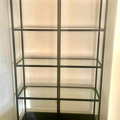 Fin hylla med hyllplan i glas. Mest stått mes prydnadsföremål.