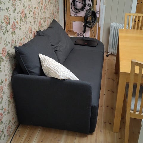 är 80cm bred, Så sov ytan blir totalt 160cm med båda utfällda.