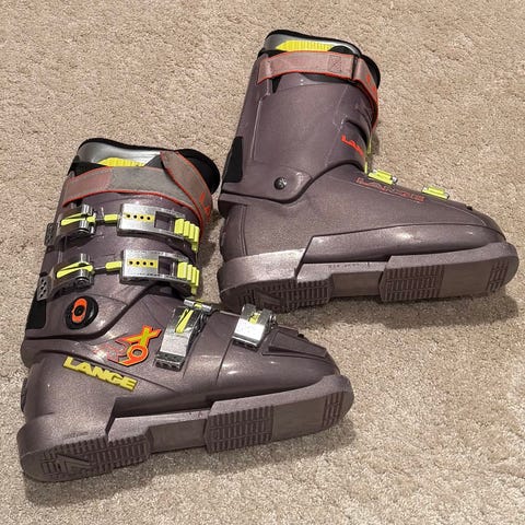 Ett par Lange skidpjäxor i storlek 290, vilket motsvarar ungefär storlek 44-45. Yttermått 338mm.