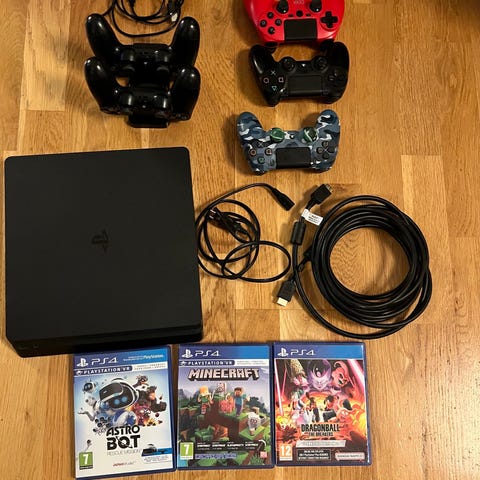 Playstation 4 slim 500GB med 3 handkontrollorer.