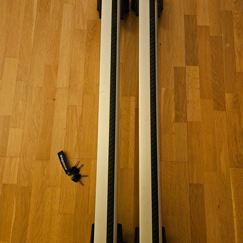 Volvo orginal takräcke från Thule i aluminium med låsbar funktion. (Nyckel finns) Passar för att transportera extra bagage eller utrustning på bilens tak. Produkten är använd men i bra skick.