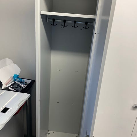 Två dörrar på varje skåp. Vred som kan låsas med hänglås. Finns i, och avhämtas i Åre Sadeln.