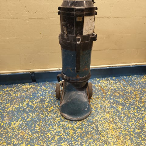 Nilfisk Selecto Flex støvsuger med metallkropp og svart design. Utstyrt med fleksibel slange og egnet for rengjøringsoppgaver i hjemmet eller arbeidsmiljøer.