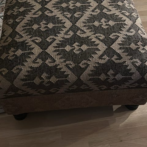 Fullt fungerande fotpall, det är en planka som är trasig men det är inget man märker. Kan sittas på och stå på utan att den Vinglas eller faller isär.