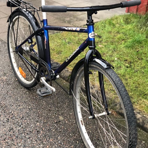 Blå herrcykel. Som ny