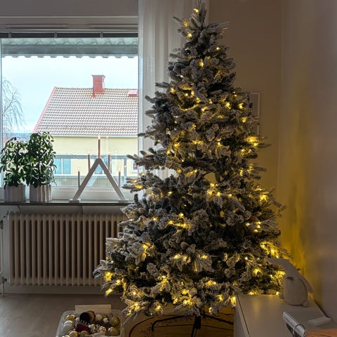 Julgran, s.k. röjgran, ca 250 cm, huggen i torsdags. Finns i Valla.