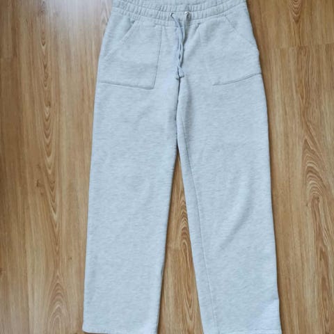 Supermysiga beige mjukisbyxor från Kappahl i storlek M. Byxorna har en loose passform, resår i midjan och muddar vid bensluten. Tillverkade i mjukt fleece-material, perfekta för chill hemma. Två sidofickor för mobilen eller nycklar. Har en liten svart fläck.