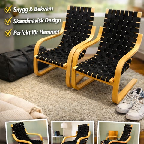 A limited edition was made by Ikea in 1999 as a tribute to the original design by Alvar Aalto. This Poang armchair was launched exactly 60 years after the unveiling of the original design by Alvar Aalto. The woven strips approach the original design of the Artek Armchair 406 perfectly.