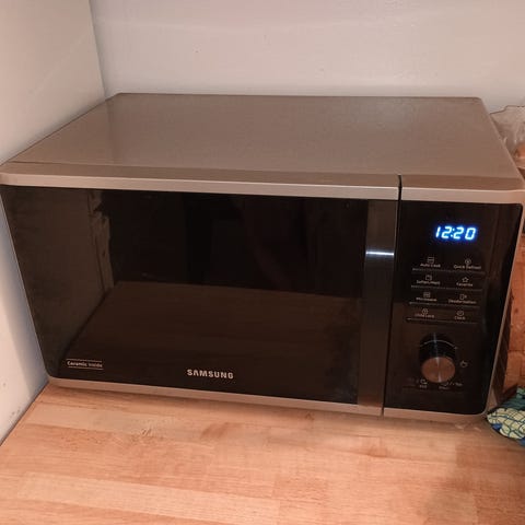 Vi felköpte en begagnad Samsung Mikrovågsugn MS23K3515AS (den är lite för bred för placeringen i köket) och säljer den istället. Den rymmer 23L och har max-effekten 800W.