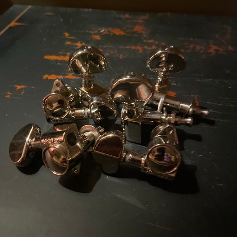 Stämskruvar i krom från en Jackson DX10D.