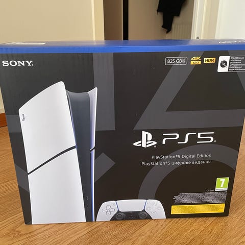 Sony Playstation 5 Digital Edition spelkonsol utan skivläsare, vit färg.