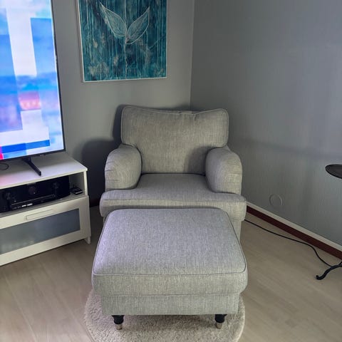 Trevlig fotölj i behov av lite kärlek. Vart den kommer ifrån ser man på bild 2.