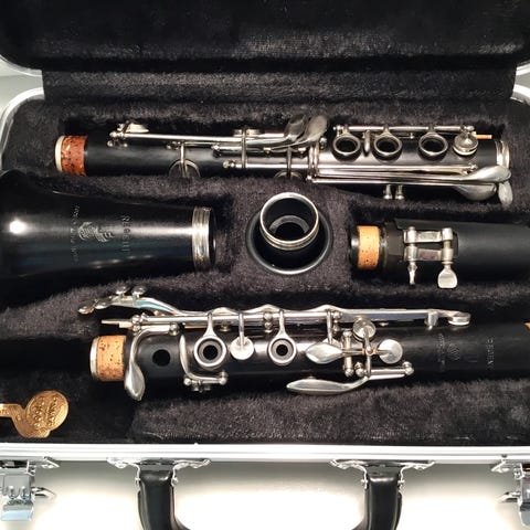 Borghese klarinett tillverkad i trä. Instrumentet kommer med originalfodral och metallklämmor. Klarinetten är uppdelad i flera delar och har en korkkontakt för montering.