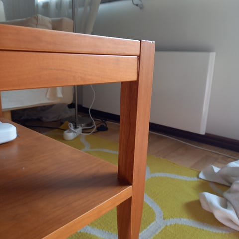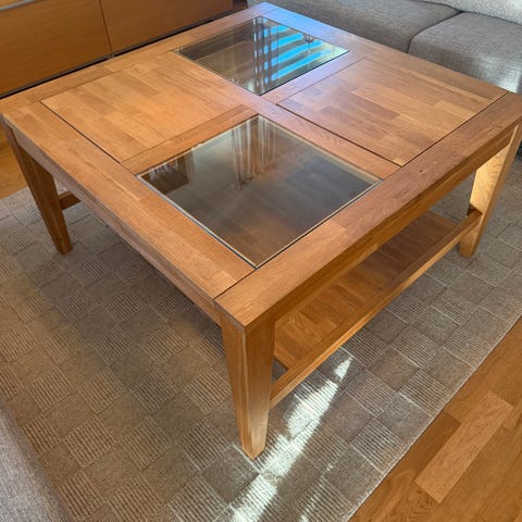 Soffbord i trä med glasskiva och hylla