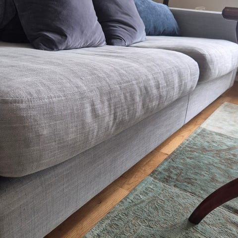 Säljer en elegant Valen soffa från Sweef, modell 224, klädd i ribbad sammet i färgen Kräm 400. Bekväm, stadig och i mycket gott skick.
