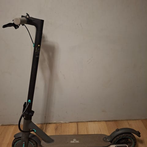 Elscooter i svart färg. Utrustad med handbroms och en display på styret. Passar för vuxna och ungdomar. Lämplig för stads- och kortare pendling. Det är nån kabel som behöver justeras kan inget om det därför säljer jag billigt batteri o allt funkar som det skall.
