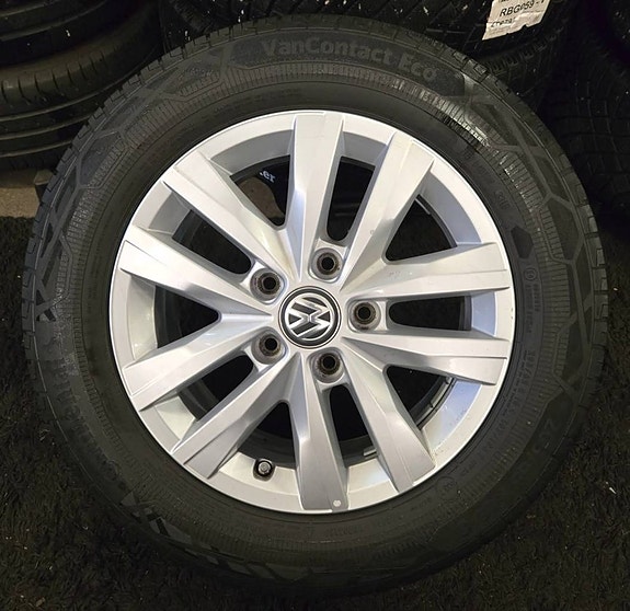 Nu säljer vi en mycket fin uppsättning original Volkswagen aluminiumfälgar, monterade med Continental VanContact Eco sommardäck.