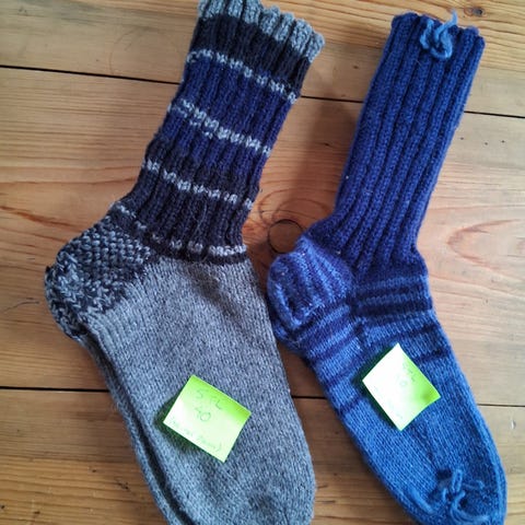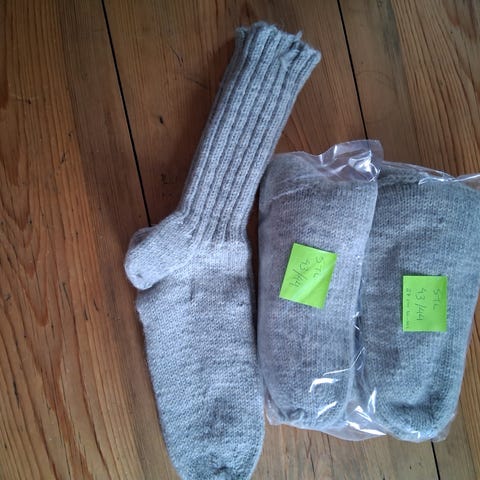 Varmstrumpor/raggsockar för kalla fötter, två par är sparsamt använda (dom två längst till höger i bild) men självklart fina och fräscha, resten är oanvända.