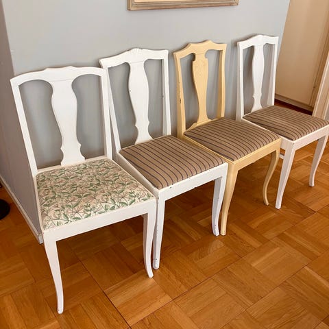 Fina stolar i stilen rokoko/bondrokoko tillverkade på svenskt snickeri. Bekväma och vackra! Avtagbar sits som är lätt att klä om själv.