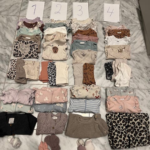 Diverse bodys, byxor, pyjamasar, tjocktröjor & fleecejacka i storlek 74.