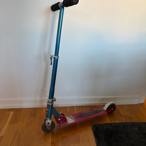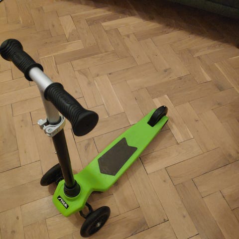 Nordic Djoj Barnsparkcykel i grön färg. Sparkcykeln har fyra hjul och är anpassad för barn. Den är tillverkad av metall och plast.