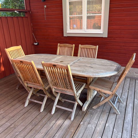 1. Massivt matbord i obehandlat Teak 220x100cm (nypris 12.990kr). 7 mån gammalt