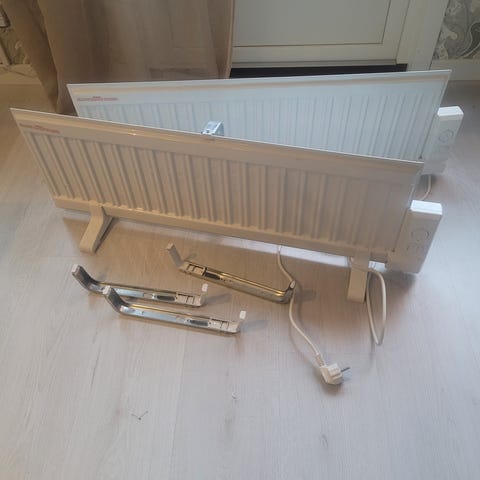 2 st oljefyllda element från Gnosjö. Elektrisk termostat på båda väggfästen och tillbehör medföljer.