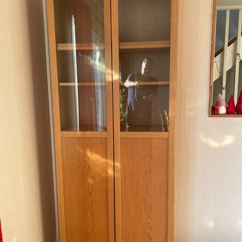 Billy bokhylla ek, 6 hyllplan. Obetydlig skrapmärke på en av hyllorna - hyllorna kan enkelt flyttas.