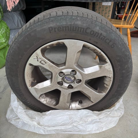 Däcken är tillverkade Vecka 23 i år och har rullat ca 150mil. Fälgarna är 7x17 ET48 och har medföljande navringar för 65,1 och 63,4 samt Hjulbultar.