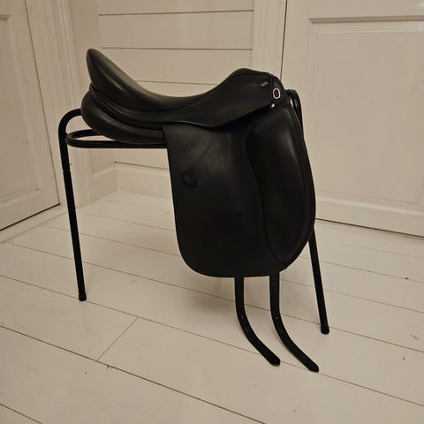 Fin Lippo Azzario Alto med stora flyttbara knästöd som är väldigt skön att rida i. Bra skick på stroppar, sadelgjord o sadelskydd ingår.