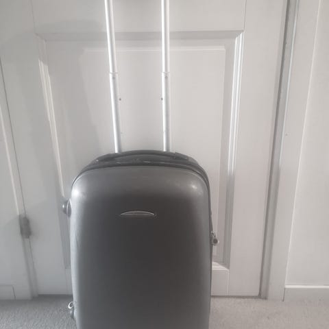 Kabinväska, expanderbar, hjul, teleskophandtag, 2 ytterfack, invändigt fack, remmar invändigt för kläder.