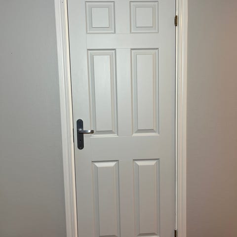 Massiv trädörr med karm och handtag
