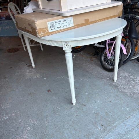 Längd :135 cm ihopfällt 237 cm med samtliga iläggsskivor. Gustaviansk stil i körsbärsträ.