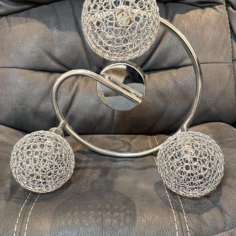 Säljer en fin och varsamt använd taklampa i silver och den funkar utmärkt. Finns i Huddinge.