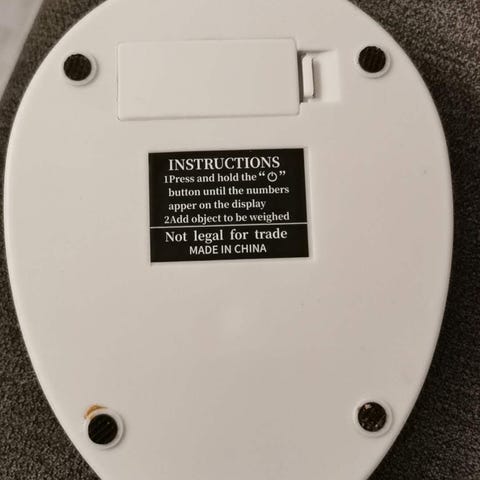 Digital köksvåg med hög precision. Väger föremål upp till fem kilo med en upplösning på ett gram.