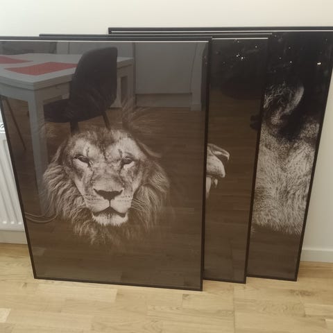 En av ramarna (en 40x50cm) har ett litet märke på plasten, men det är inget som syns såvida man inte letat efter det.
