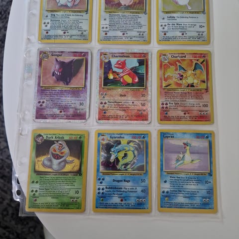 Pokémon kortspel samlarset med olika kort i plastfodral. Passar för samlare och spelare av Pokémon kortspel.