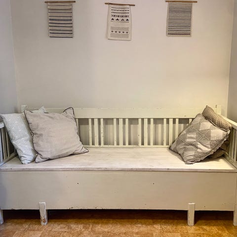 Praktiskt inbyggd källsortering i soffa. Jag har använt den som kökssoffa. I gott skick. Säljes pga platsbrist.